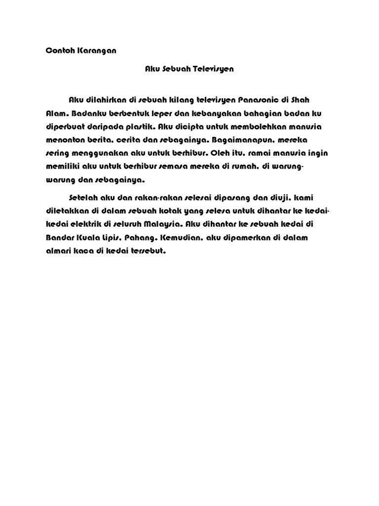 Karangan Aku Sebuah Televisyen : Karangan Aku Sebuah Televisyen Pdf. Aku sebuah televisyen.namaku sony.aku dilahirkan di sebuah kilang yang terletak di italy.warna badanku ialah putih dan kelabu.aku diperbuat daripada besi . Contoh karangan autobiografi contoh karangan autobiograf aku sebuah televisyen aku dilahirkan di sebuah kilang televisyen panasonic di shah . Badanku berbentuk leper dan kebanyakan bahagian badan ku . View contoh karangan autobiografi.docx from oumm profession at open university malaysia. Aku sebuah televisyen.namaku sony.aku dilahirkan di sebuah kilang yang terletak di italy. Aku dilahirkan di sebuah kilang televisyen panasonic di shah alam. Warna badanku ialah putih dan kelabu.aku diperbuat daripada . • dilahirkan di sebuah kilang panasonic di shah alam.